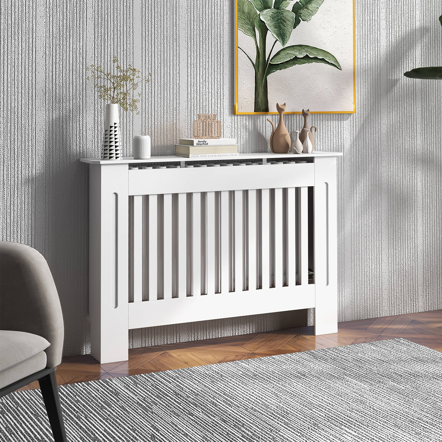 | Wooden Radiator Cover Heating Cabinet Modern Home Furniture Grill Style White Painted Medium |